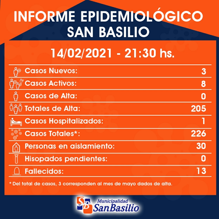 La Municipalidad de San Basilio informó que se registraron tres nuevos casos positivos de coronavirus.
