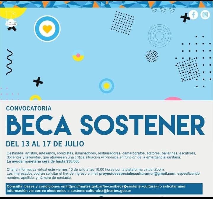 La Secretaría de Cultura, Educación e Inclusión informa a interesados para las Becas Sostener, que la convocatoria se realizará del 13 al 17 de julio.