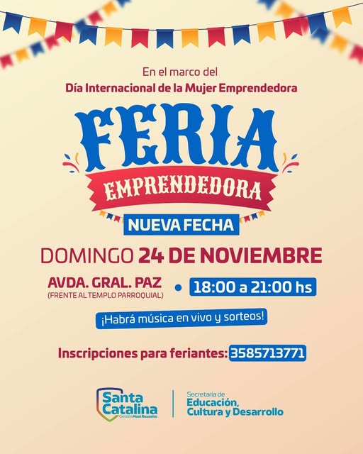 Santa Catalina: ¡NUEVA FECHA! ¡FERIA EMPRENDEDORA!