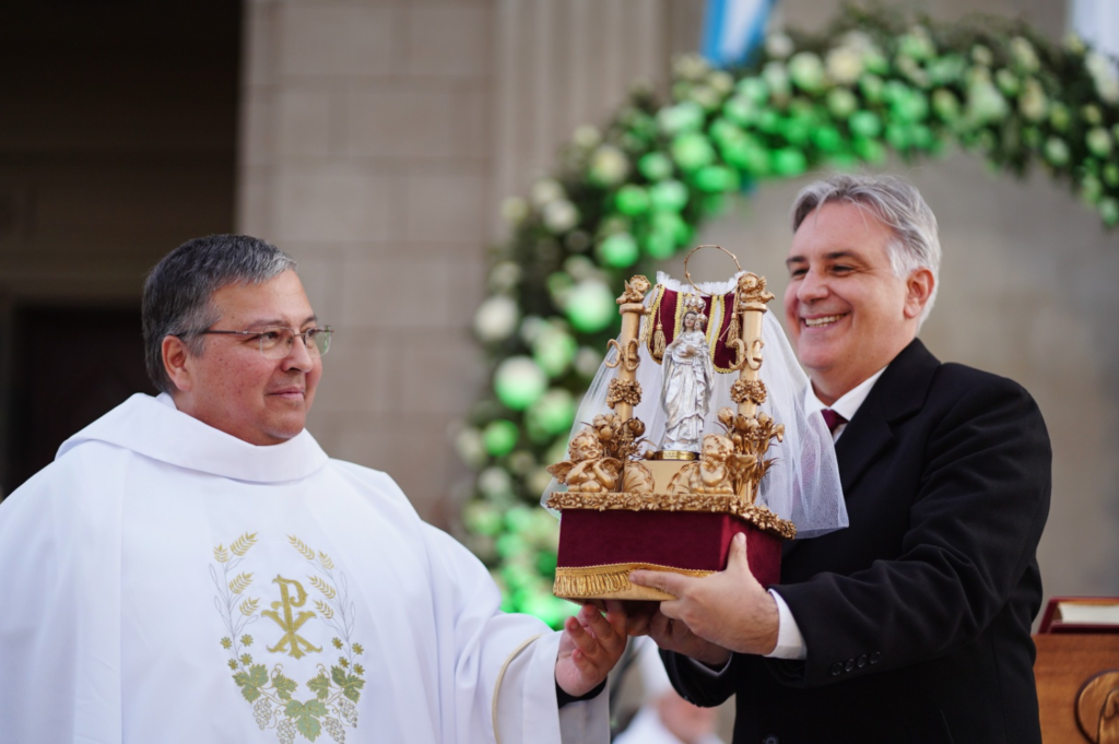 - El gobernador Martín Llaryora participó de la ceremonia religiosa y pidió que la virgen “ilumine a los argentinos para que en unión y en paz podamos salir adelante”.