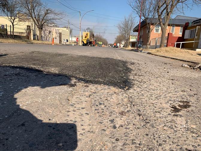 Considerando que la Av. Perón es el único acceso a la localidad en el marco de la pandemia y el tráfico pesado ha deteriorado la carpeta asfáltica, se ha priorizado su bacheo junto a la Av. Alberdi que también tiene alta circulación vehicular y es de gran longitud.
