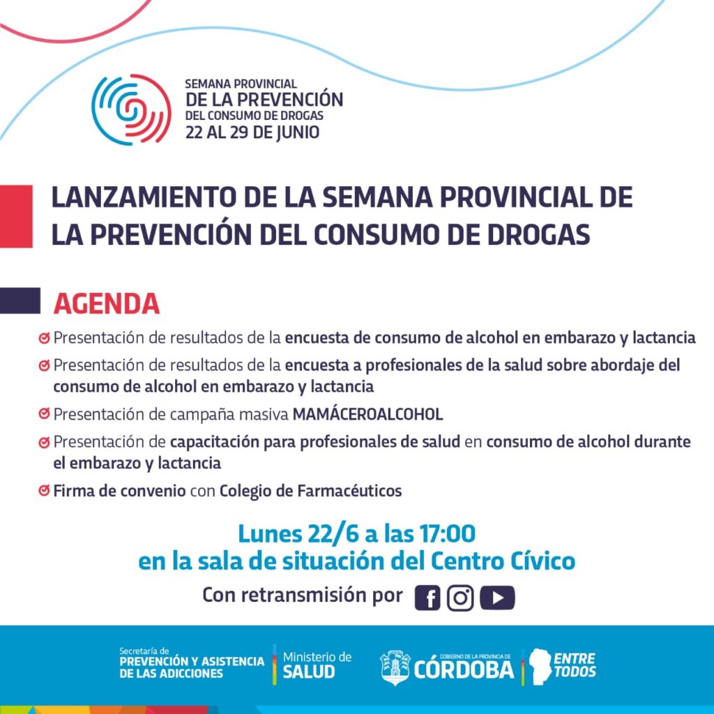 Este año se abordarán 4 ejes centrales durante la semana: consumo de alcohol en el embarazo; consumo de alcohol durante la lactancia; consumo de tabaco y escenario post aislamiento. En este marco, se llevarán adelante más de 300 actividades tanto en la Ciudad de Córdoba, como así también en las 100 localidades del interior donde se encuentran los Centros de la Red Asistencia de las Adicciones de Córdoba (RAAC). Dado el contexto actual de la contingencia a raíz del COVID-19, las diferentes intervenciones previstas se adaptarán para desarrollarse de manera virtual.