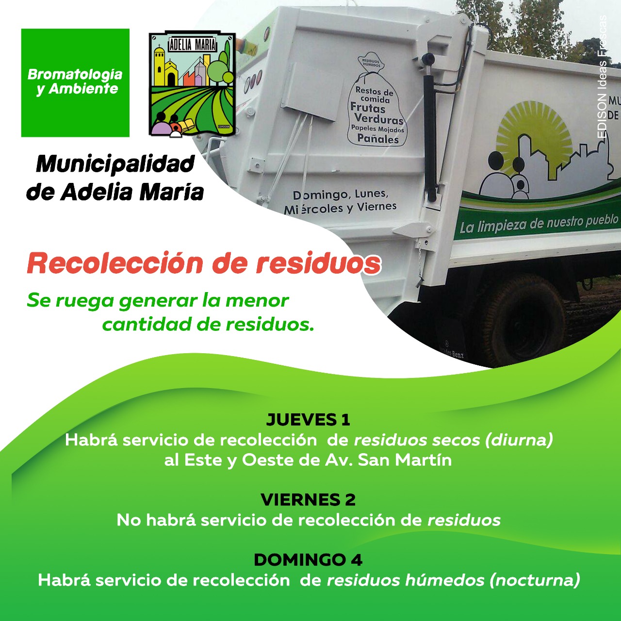 La Municipalidad de Adelia María informó como será la recolección de residuos durante Semana Santa.
