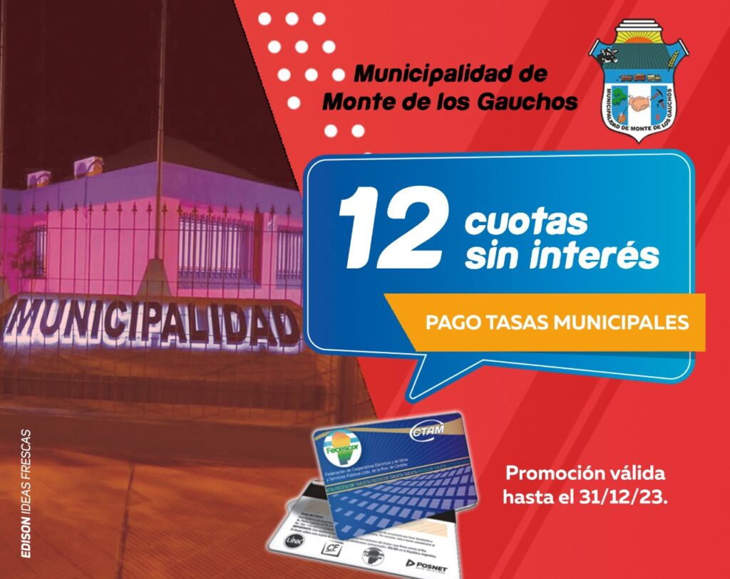 La Municipalidad de Monte de los Gauchos recuerda que el vencimiento del impuesto es el próximo 31 de Enero.