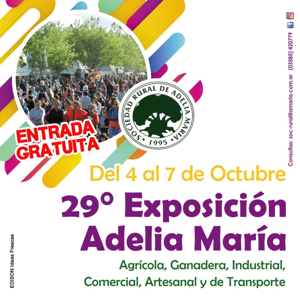 29° Exposición Adelia María. Del 4 al 7 de octubre. Entrada Gratuita