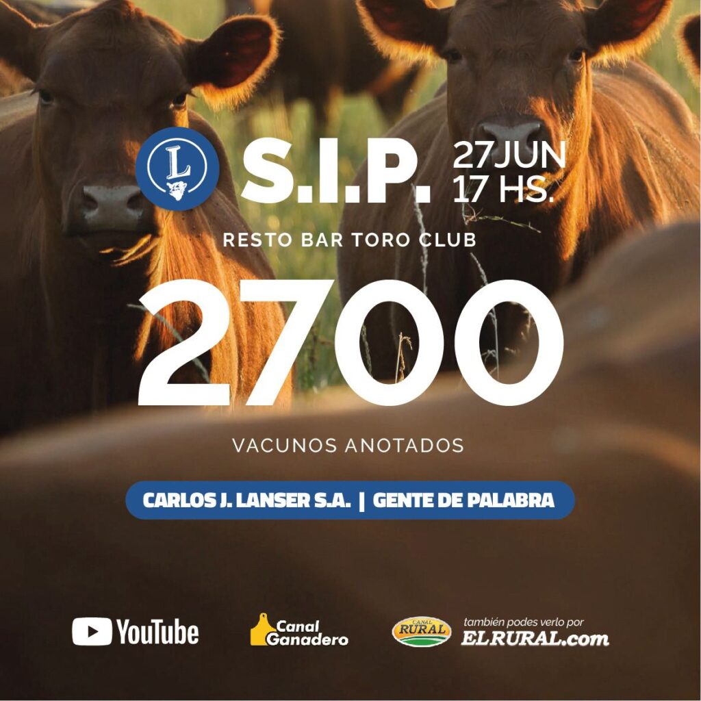 Seguinos en vivo el jueves 27 de junio a las 17 Hs. desde nuestro canal de YouTube 📲 o desde Resto Bar Toro Club, ➡️ S.I.P. Subasta Integral Premium🏅