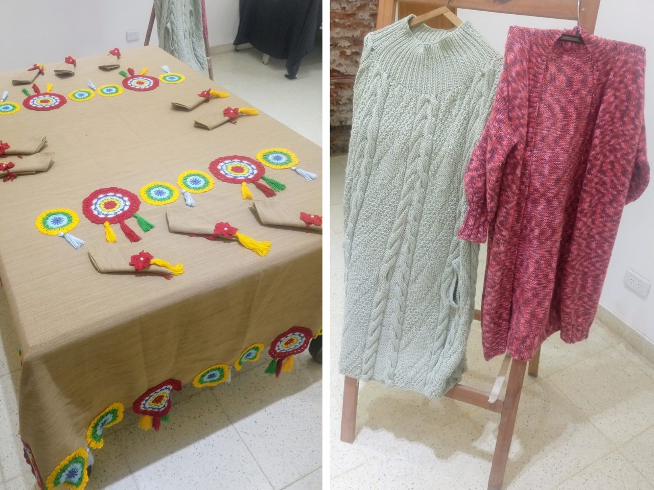 Se desarrolló la exposición de trabajos y cierre anual del Taller Municipal de Tejido en el Hall del Ex Cine Español de la localidad de Vicuña Mackenna.