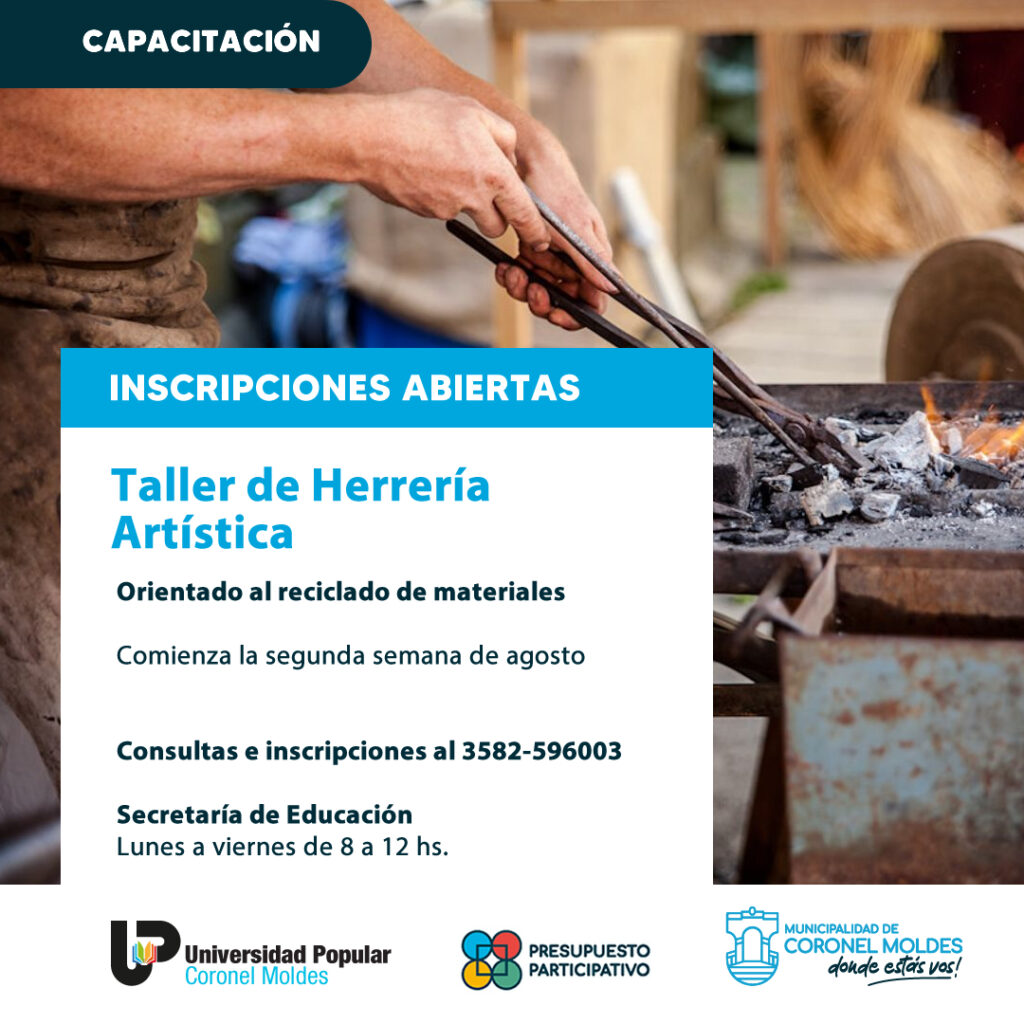 La Municipalidad de Coronel Moldes habilitó las inscripciones para el Taller de Herrería Artística orientado al reciclaje de materiales, las clases comenzarán la segunda semana de Agosto.