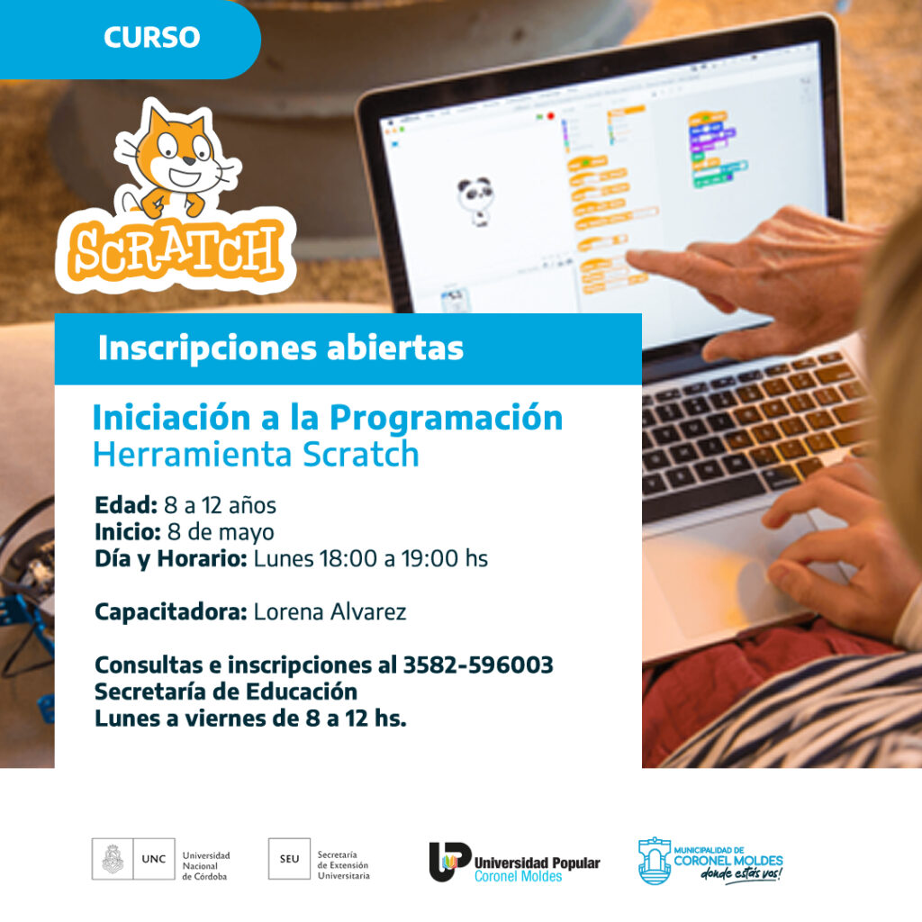Ya se encuentran abiertas las inscripciones para realizar el taller de Iniciación a la Programación en la localidad de Coronel Moldes, destinado a niños de 8 a 12 años de edad. El taller iniciará el día 8 de Mayo y se dictará los días Lunes de 18 a 19 hs.