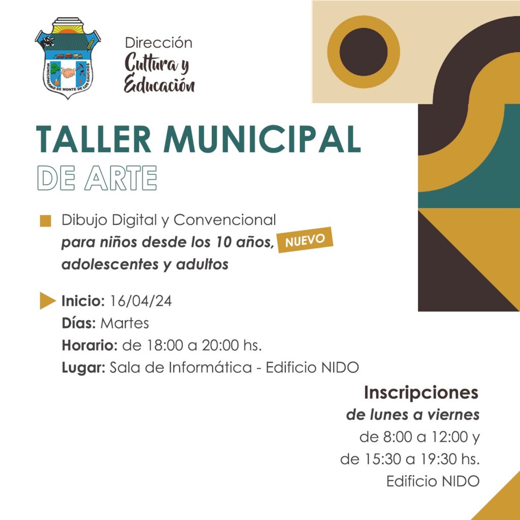 La Dirección de Cultura y Educación de Municipalidad de Monte de los Gauchos informa que, atendiendo a las solicitudes, amplió la edad de inscripción para el Taller de Dibujo Digital y Convencional a cargo de la Prof. Lorena Dutto.