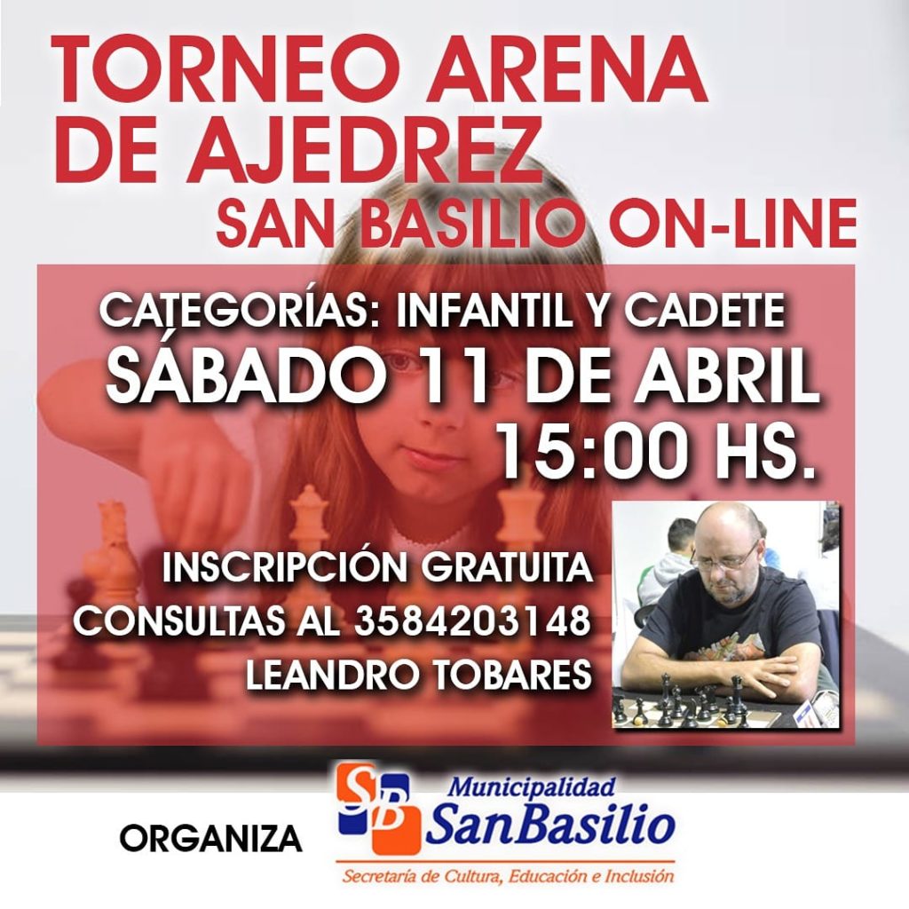 Se jugará un torneo Arena de ajedrez en San Basilio. Será de manera virtual a través de la plataforma Lichess con tiempo de siete minutos finish por jugador.