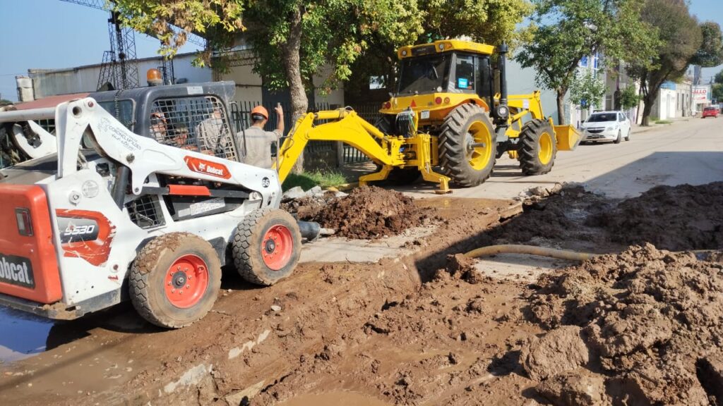 Se están realizando los trabajos para la reparación de un caño de agua en la esquina de Mitre y Hernández, en la localidad de Coronel Moldes.