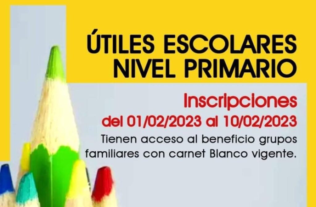 El 1 de Febrero se abrirán las inscripciones para los útiles escolares 2023: nivel primario, para todos los grupos familiares con carnet blanco vigente de la localidad de San Basilio.