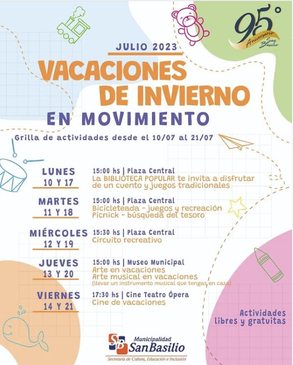 La Municipalidad de San Basilio publicó el cronograma de eventos y actividades a desarrollarse durante este receso invernal.