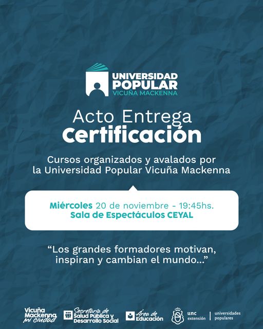 • Cursos organizados y avalados por la Universidad Popular Vicuña Mackenna