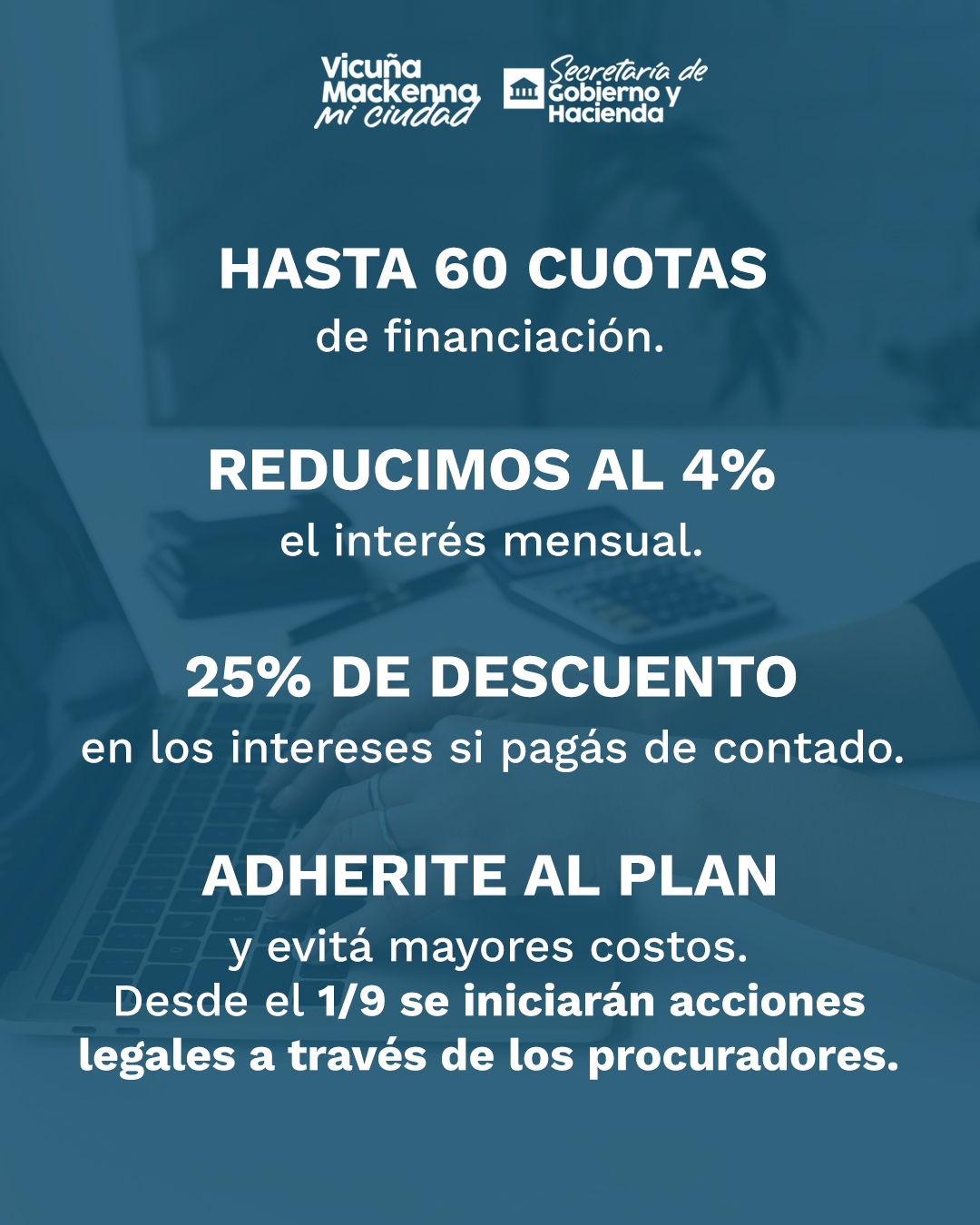 Adherite al plan y evitá mayores costos. Desde el 1/9 se iniciarán acciones legales a través de los procoradores.