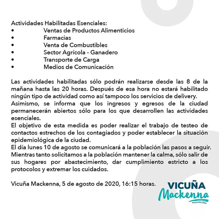 Vicuña Mackenna vuelve al aislamiento obligatorio por la aparición de tres casos positivos