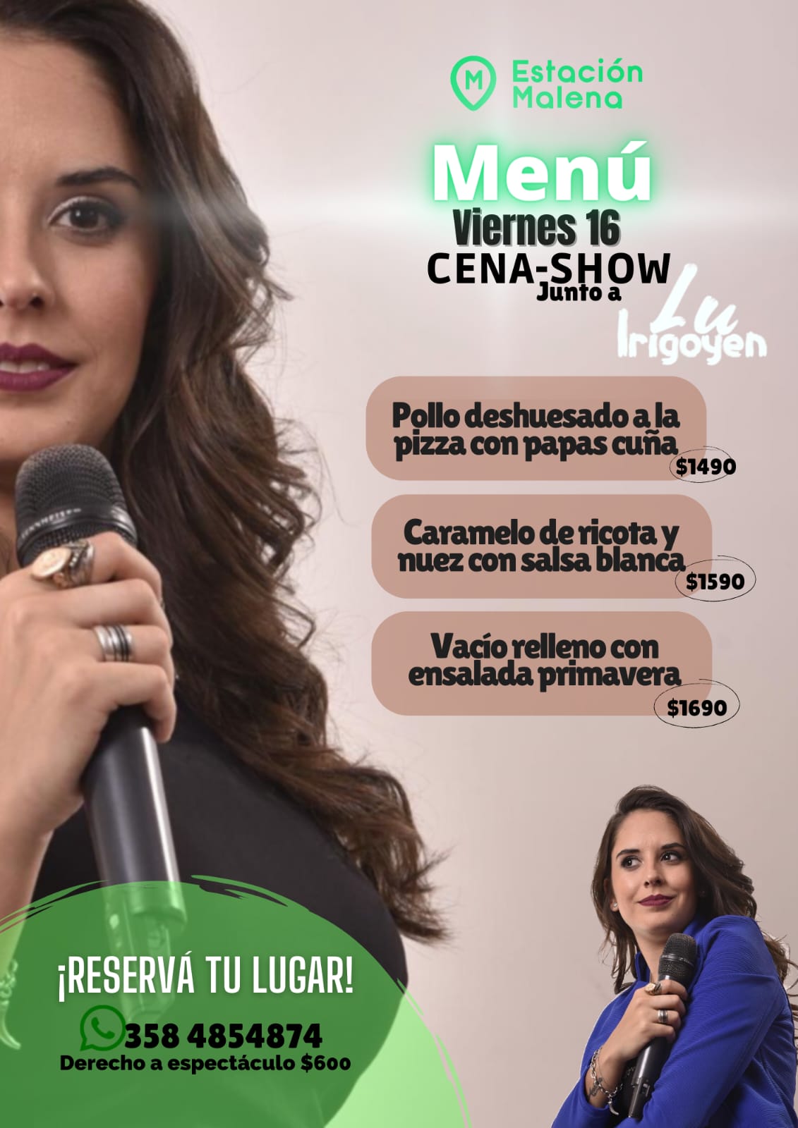 Este viernes llega Lu Irigoyen a Estacion Malena, podes hacer tu reserva al 358 4854874. Derecho de espectáculo $ 600.