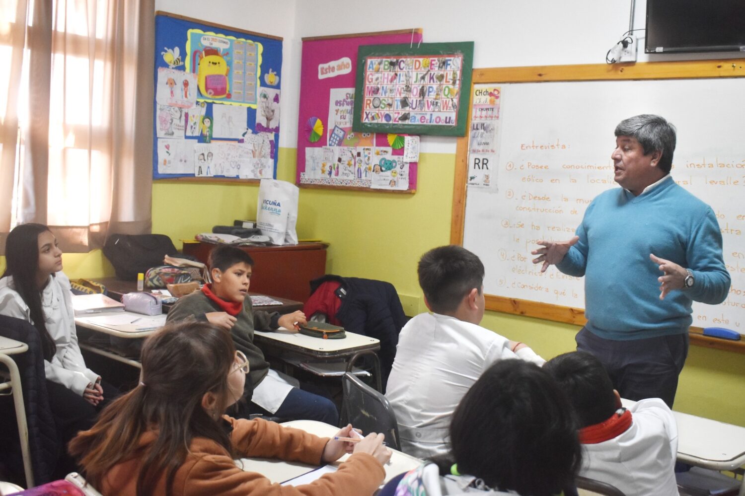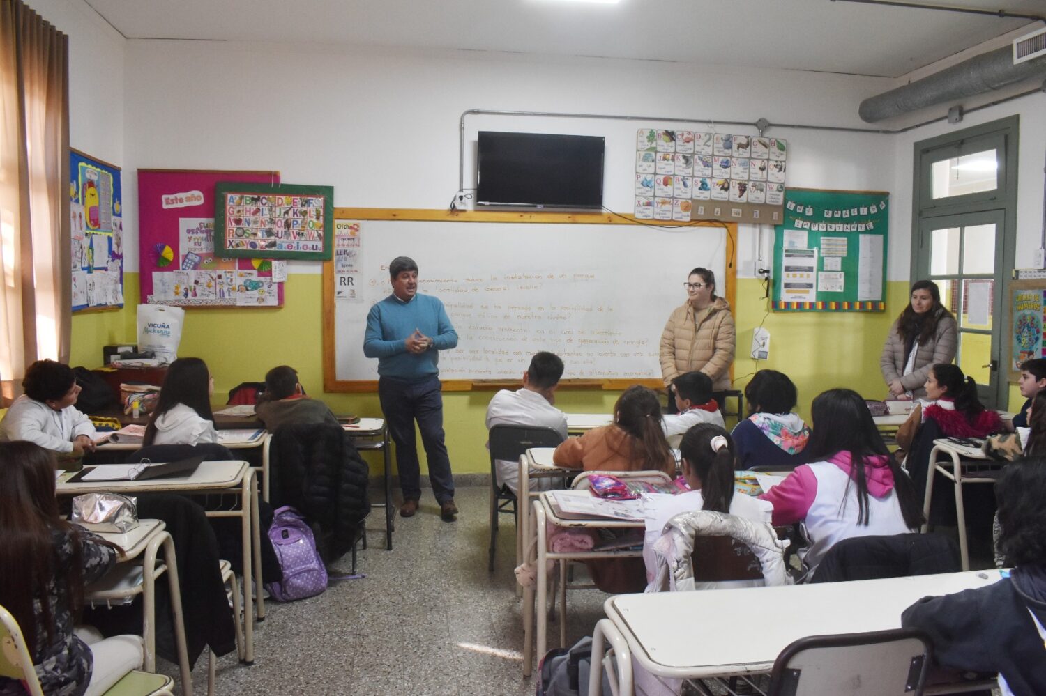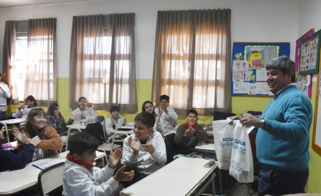 El Intendente Roberto Casari de Vicuña Mackenna visitó el Centro Educativo General Napoleón Uriburu, donde se reunió con los estudiantes de 6° grado que participaron en la 55° Feria de Ciencias y Tecnología Alberto Maiztegui.