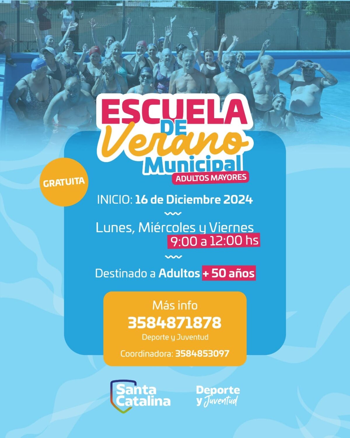A partir del 16 de diciembre, ¡Escuela de Verano para niños y Escuela de Verano para adultos mayores! Dos propuestas desarrolladas en el predio de la pileta del Polideportivo Municipal y pensadas para cada edad. ¡INSCRIPCIONES ABIERTAS!