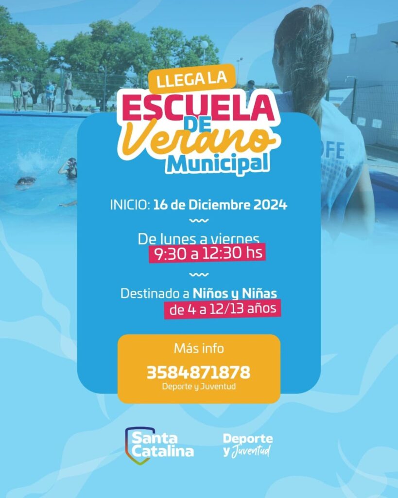 A partir del 16 de diciembre, ¡Escuela de Verano para niños y Escuela de Verano para adultos mayores! Dos propuestas desarrolladas en el predio de la pileta del Polideportivo Municipal y pensadas para cada edad. ¡INSCRIPCIONES ABIERTAS!